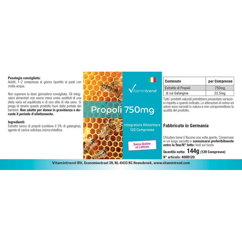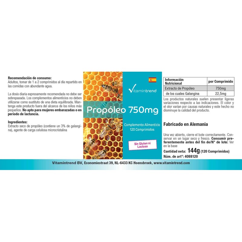 - Excellent price/performance ratio: 120 high-quality tablets. One tablet contains: 750 mg of propolis extract. Recommended daily dose: 1 to 2 tablets spread over meals with plenty of water. Standardized to 3% Galangin.