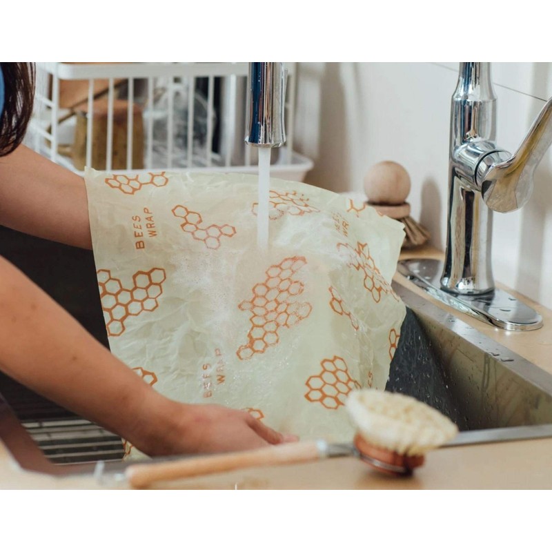 • Wrap Care 101; use the warmth of your hand to create a seal around food, bowls and pans; Bee’s Wrap will hold its shape when it cools, creating a breathable seal; rinse your beeswax wrap in cool water with mild soap, then air dry; reuse your Bee’s Wrap for up to a year with regular use and proper care.