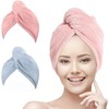 BEE VIBES Moon & Back Toalla de Microfibra para Cabello 2 Pack; Secado de Pelo Rápido; Gorro Absorbente de Agua para Mujeres; Turbante Suave de Baño con Botones (Rosa + Azul)