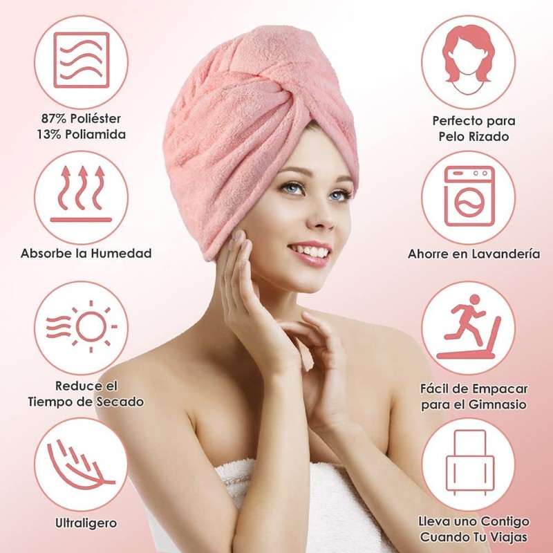 Después de lavarte el cabello, envuélvelo en la lujosa envoltura de toallas para el cabello hecha de microfibra súper absorbente y ultra suave. En solo diez minutos, absorbe casi el 75% del agua, lo que le ahorra tiempo y dinero, con menos secado para dañar su cabello.