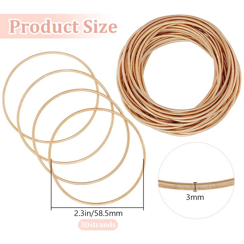 Beebeecraft 1 Box 30Pcs Steel Wire String Bracelets Bulk 12 Gauge Golden Metal Simple Stackable Spring Memory Spiral Bangle Guitar Strings Bracelets for Jewelry Making Embroidery DIY Crafts Decoration