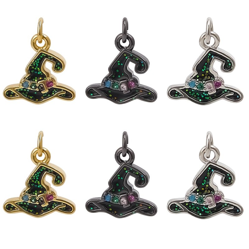 Beebeecraft 1 Box of 9 Wizard Hat Pendants Genuine 18K Gold-Plated Brass Cubic Zirconia Halloween Enamel Hat Pendant Flat Pendant for Jewellery Making, 18K gold-plated brass with cubic zirconia, Cubic