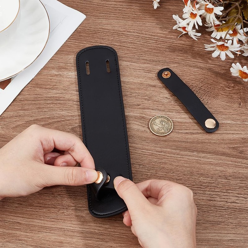 Beebeecraft 2 Sets Shoulder Strap PU Leather Black Replacement Detachable Imitation Leather with Alloy Button Protector Cover Bag Shoulder Handle Wrap Straps for Tote Bags Purse Women DIY Making