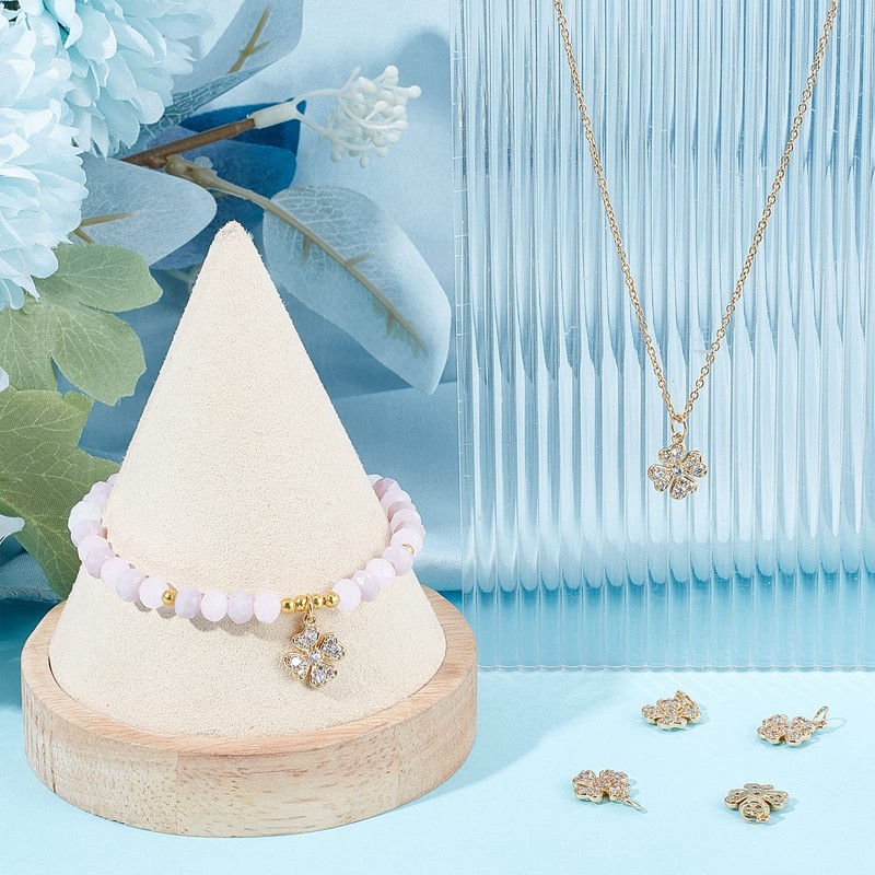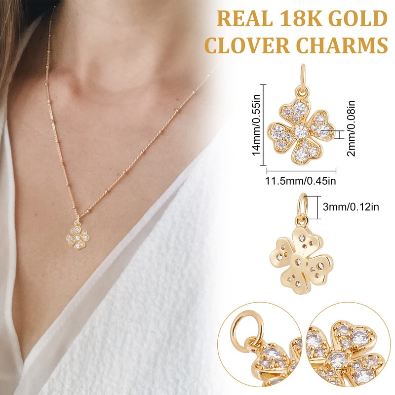 Beebeecraft 6pcs/box Four Leaf Clover Charms 18K Gold Plated Brass Good Luck Pendant Cubic Zirconia St. Patrick's Day Clover Pendant for Necklaces Bracelet Earrings