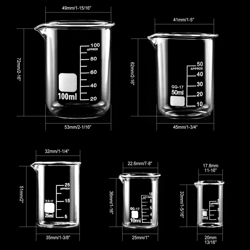Beekeg Measuring Cups Small 5 ml + 10 ml + 25 ml + 50 ml + 100 ml Sets for Laboratory Measuring Cups