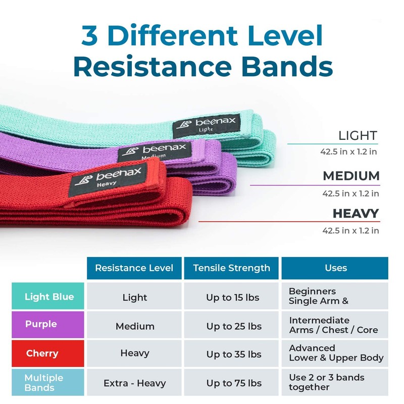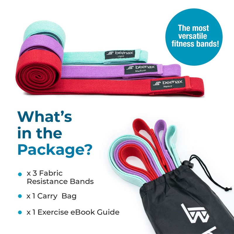 Beenax Long Resistance Bands (Set of 3), Fabric Exercise Bands for Women, Clo...