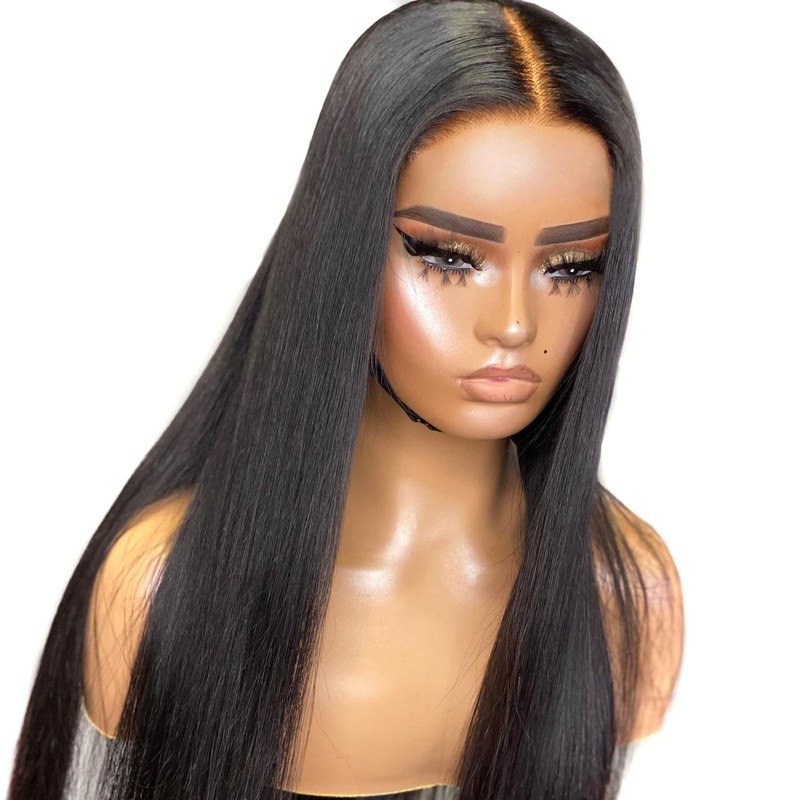 - 【Soft Human Hair Wig】Straight human hair wig with a 5x5 lace area, True to length and True 180% density making the hair look full and thick. It can be dyed and curled into wavy, curly, and other different styles