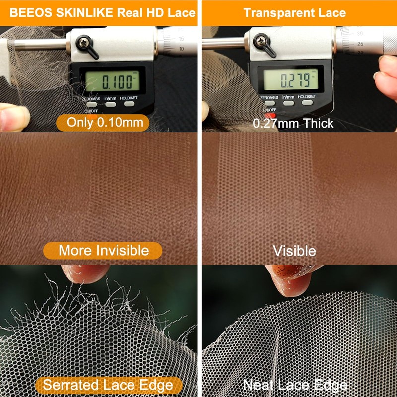 - 【BEEOS SKINLIKE Real HD Lace】It is only 0.10mm thick , which is thinner and more invisible than the other lace. It can Mlet into your skin and it's perfect for all skin tones. In addition, real HD lace will form a serrated edge when you tear it with hands