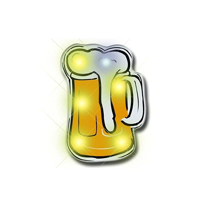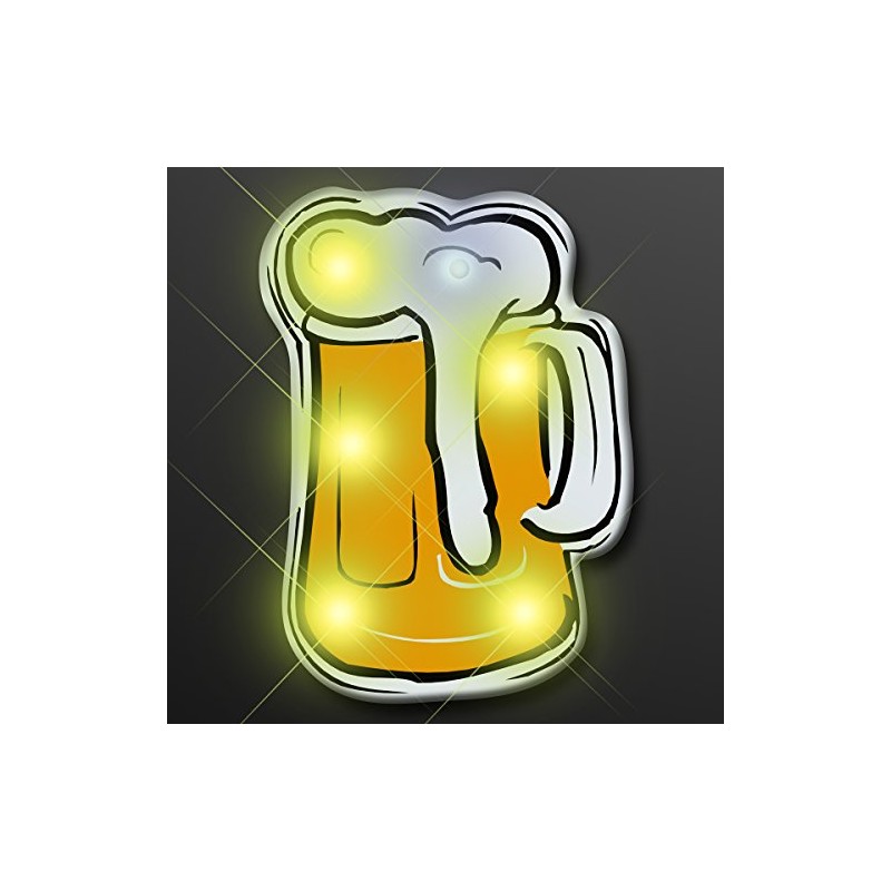 - INCLUDES: Five Flashing Beer Mug Shaped Pins With Bright LED Lights & Safety Pin Clasps