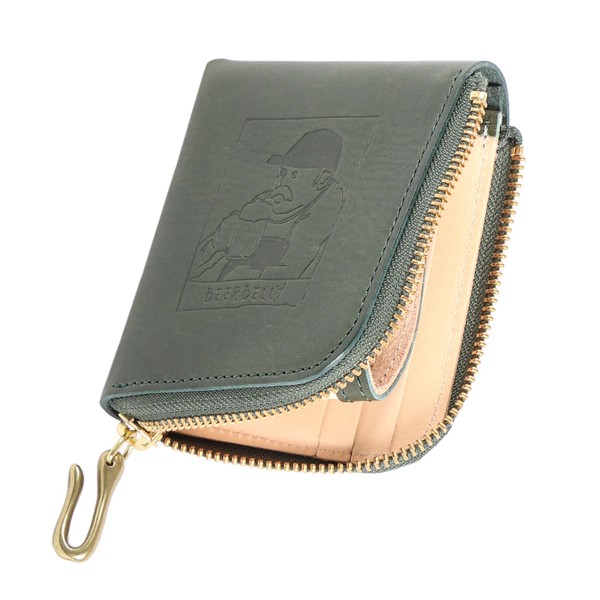 BEERBELLY Bi-fold Wallet, Small ROUND Wallet, Genuine Leather, For Uncle, Compact, Men's Gift, green