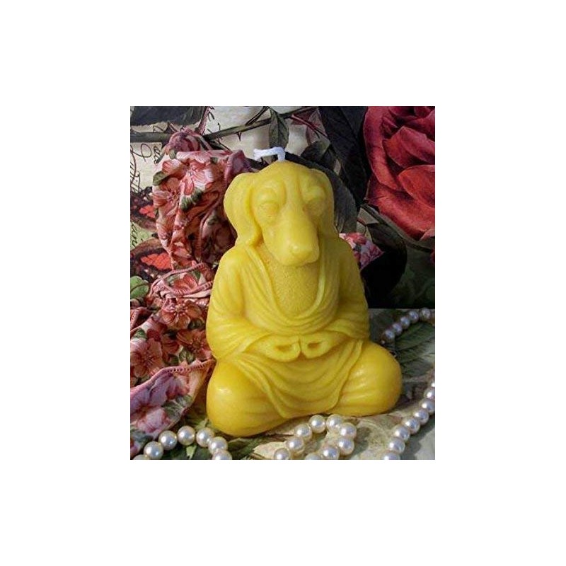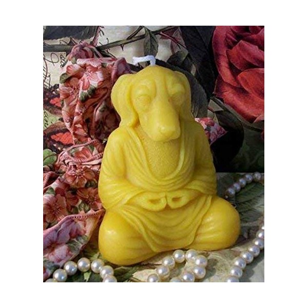 This purchase is for the Buddha Dog Beeswax Candle, approximately 4" tall. It's 3-D all around as you can see from my picture. You can even see the hair on the chest of the dog....Awesome Detail. I have also included pictures of the companion Zen Cat which is also available for purchase. This purchase is for THE ZEN DOG ONLY. Made from natural beeswax with cotton wick. Natural honey scented, I let nature pick the scent, you can't go wrong with that. The hive wax scent is made by the bees of the colony visiting the different flowers in the area. Different regions of the US will have different beeswax scents. Each candle is hand poured upon payment and I pour each candle myself.