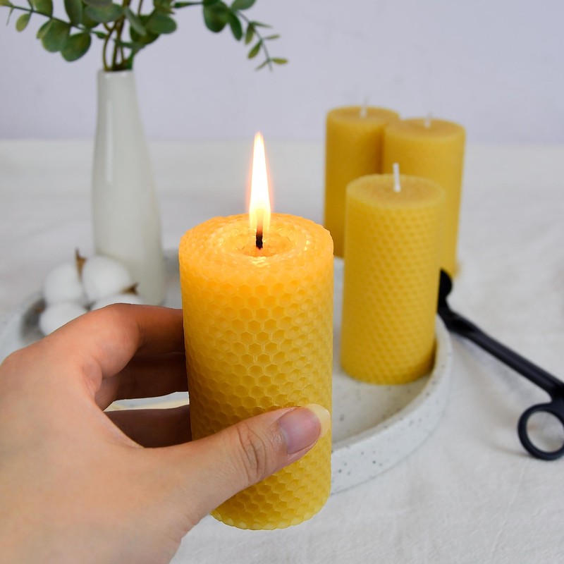- Hand-Rolled: Each meticulously handcrafted beeswax pillar candle stands at a special of 2 inch diameter and 4 inch height, effortlessly matching candle holders.