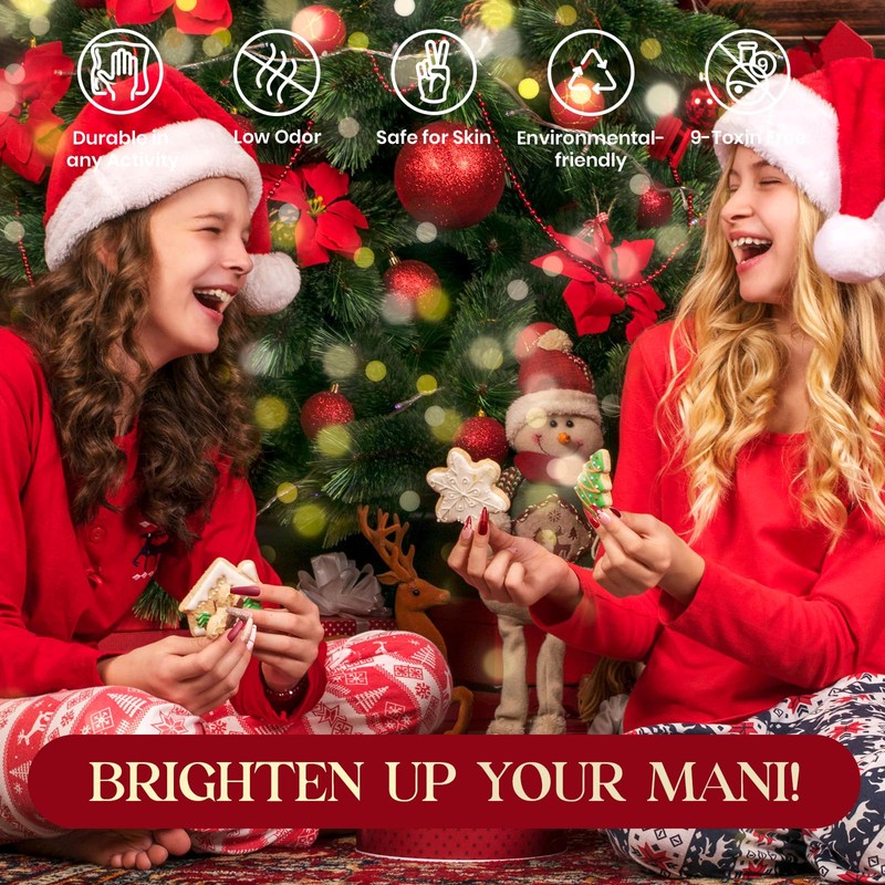 - Soak off LED Gel Nail Polish: The colors of the 2024 Holiday Kit - gel nail polish kit, including snow white sparkle and red gel polish, need to be cured under an LED nail dryer. Base and top coat are required. Average curing time for an LED nail lamp is 60-120 seconds. Only use for nails and avoid direct contact with the skin. Wash immediately if contact occurs. If you feel unwell, stop using immediately and seek medical attention.
