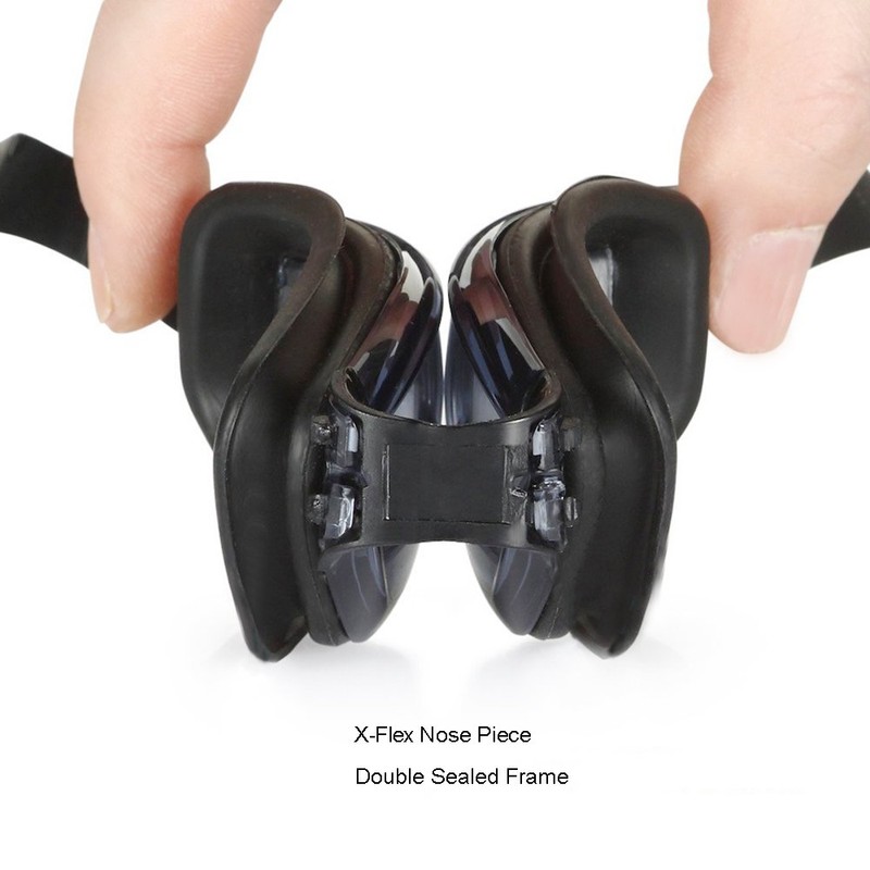 The frame of the swimming goggles has flexible silicone seals for a leak-proof seal. Soft eye area, so no red spots are left and no discomfort.