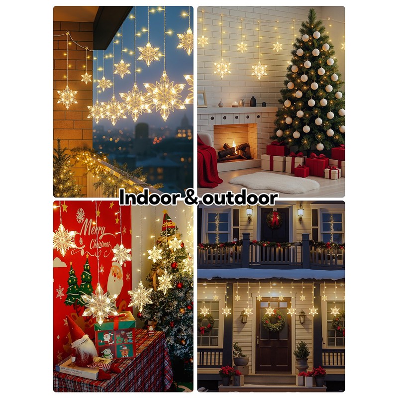 - Versatile Hanging Snowflake Lights Outdoor: Perfect snowflake string lights for eaves, windows, trees, fences, rooftops, patios, weddings and Christmas displays. Create magical winter wonderlands with our energy-saving snowflake icicle light