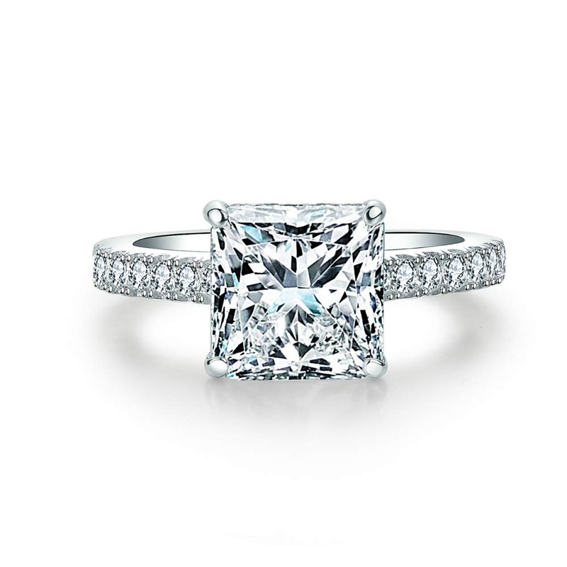 - Measurement: 8x8 mm princess square engagement ring, 3.00 carats pave engagement ring, gorgeous big stone, wide band width at about 2.0 mm, 1.75 mm accented small zircon stones on the band, feels solid