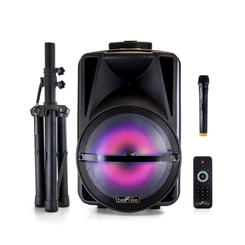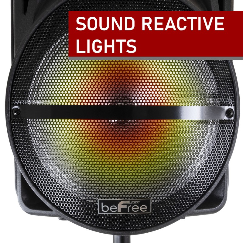 beFree Sound 12 Inch Bluetooth Rechargeable Portable PA Party Speaker with Reactive LED Lights and Stand