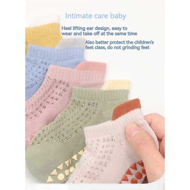 - 【Breathable & Comfortable】 Baby toddler gripper socks are made of high quality skin friendly cotton will not irritating your baby's delicate skin. The mesh design makes your baby's feet more breathable and comfortable. The thin thickness can fit in little shoes easily, It's especially good for summer.