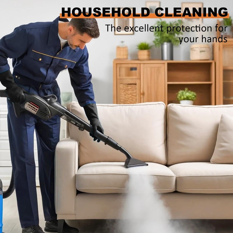 - ENHANCED COMFORT: The dishwasher gloves for men are exceptionally soft and effortlessly slip on and off. Equipped with extended cuffs, ppe gloves offer a reliable barrier safeguarding your wrists and forearms against splashes, abrasives, and hazardous chemicals.