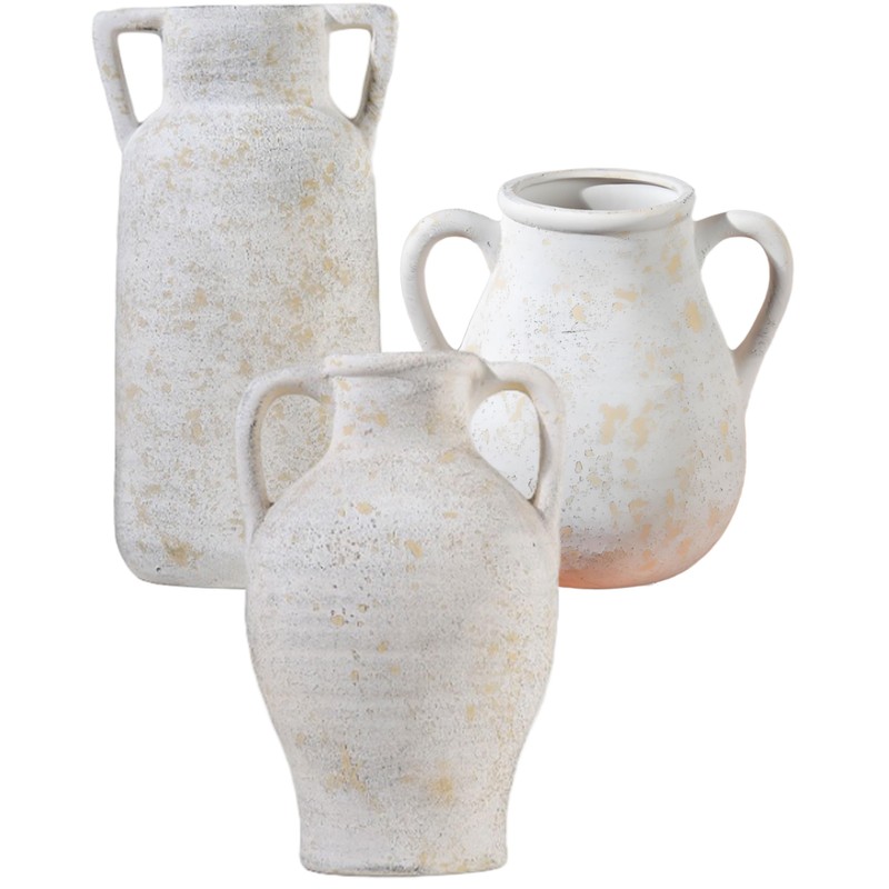 - 【Handcrafted Ceramic Elegance】 Each vase is carefully handmade, showcasing unique craftsmanship and natural variations in color and texture. The beige ceramic body with an aged eroded finish offers a warm, rustic touch to any space.