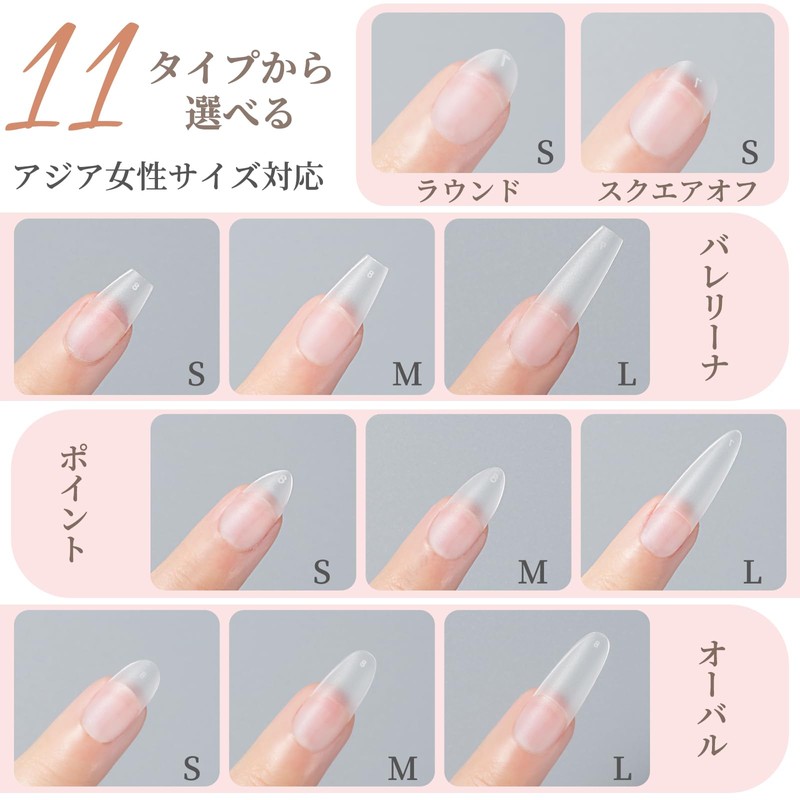 • (Easy to use) BEIHOO clear tip nails are available in all 11 designs. With a variety of styles, you can find your favorite transparent nail tips like ballerina (S/M/L), point (S/M/L), round (S), square off (S), oval (S/M/L), and more. With the size number, you can easily find the right size for you and easy management. Includes a storage case, nail tool, and Japanese instruction manual so even beginners can start with confidence