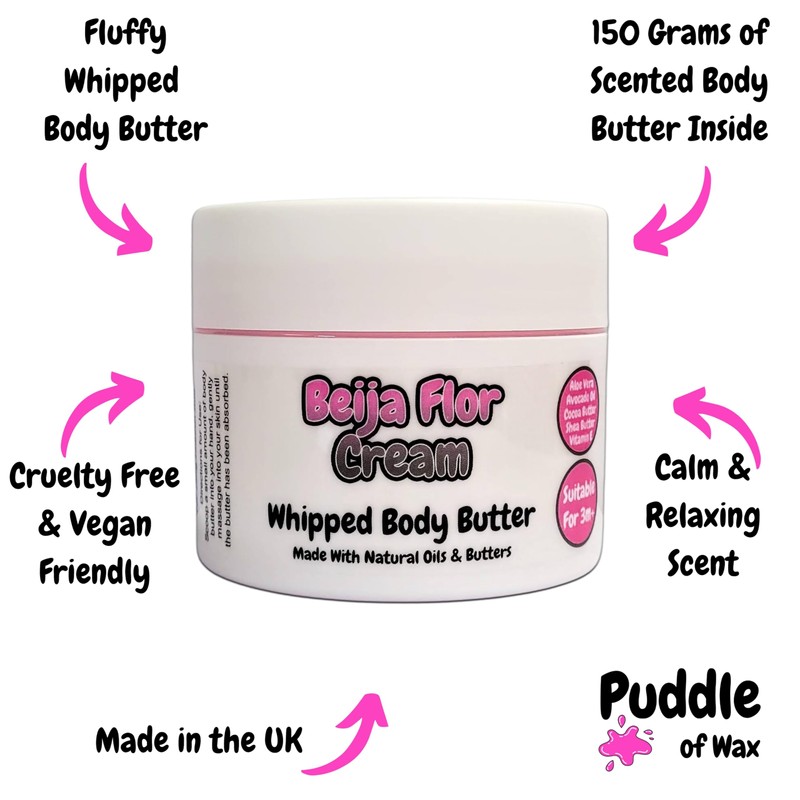 Beija Flor Cream - 150g Whipped Body Butter - Made with Natural Oils and Butters - Vegan Friendly - Puddle of Wax - Made in the UK