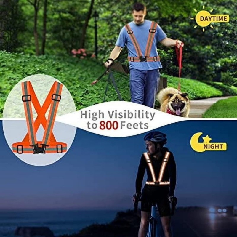 - 360° High Visibility & Safety - Features 0.6" reflective strips and fluorescent fabric for 800+ feet visibility day and night. Ideal for low-light conditions like running, cycling, or roadside work.
