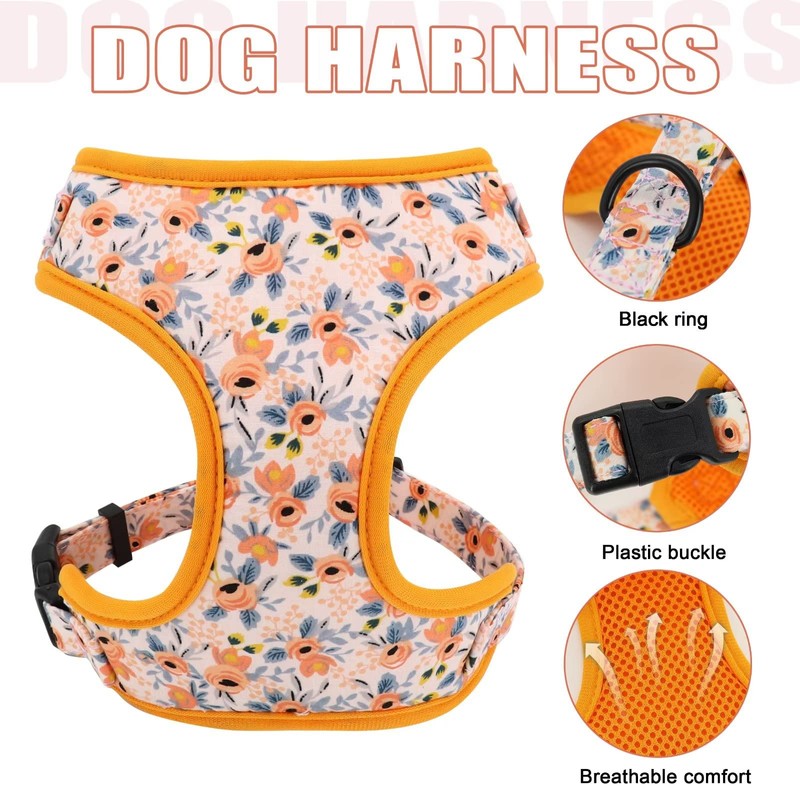 - COST-EFFECTIVE DOG HARNESS AND LEASH SET: One set include all will meet all your needs! Cute floral dog harness come with a pet leash and a pet collar. Wearing chic set for both male and female dogs on a Wedding,New Year,Birthday and Holiday Gifts,Party Costume,Christmas,Photo Shot and Family Picnic will make your dog looks very charming and fashionable