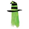 Beistle 00713-LG Witch Hat with Hair. You will be sure to stand out in a crowd with this bright colored witch hat! The hat has lime green and black stripes with lime green hair. It is one size fits most.
