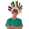 Beistle 90742 Indian Headdress. This is a very colorful headdress made of fake feathers. There is an elastic band attached to keep on the head. It is one size fits most. Be festive and wear this hat to Thanksgiving dinner!.