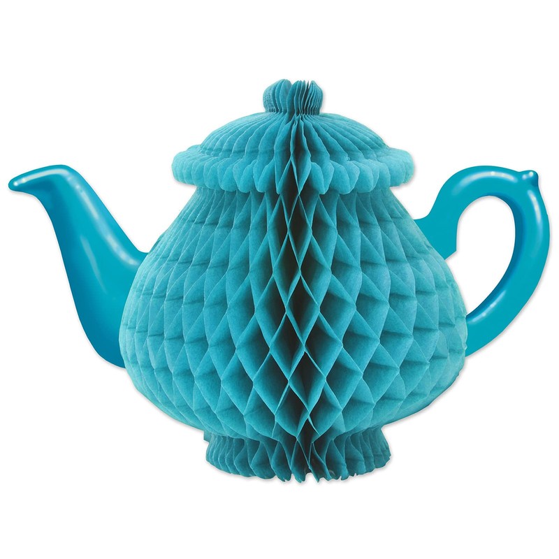 Beistle 59947 tissue teapot centerpiece. The package contains 2 teapot centerpieces. These cute teapot centerpieces are made with tissue paper and printed boardstock paper. They measure 7 inches tall. These are great centerpieces to use for an Alice in Wonderland themed party!