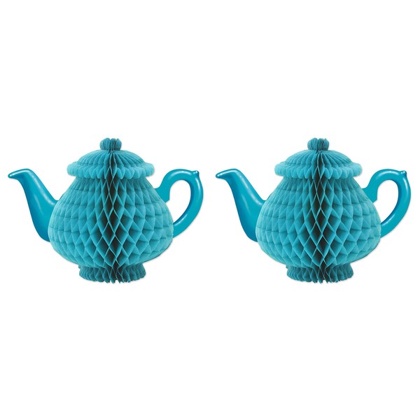 Beistle 59947, 2 Piece Tissue Teapot Centerpieces, 7", Blue
