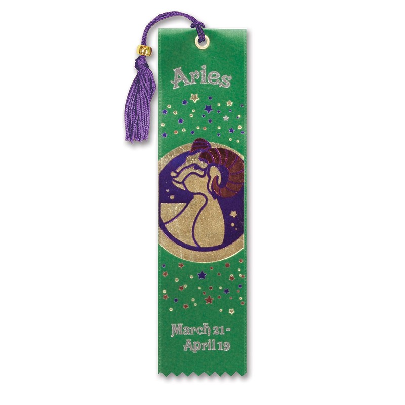 - Purple tassel. Dimensions: 2" x 7". printed with a design for Aries which is the sign for the dates of march 21 to April 19. Theme: General occasion. LEGEND: Aries. High quality. Ribbons for festive occasions