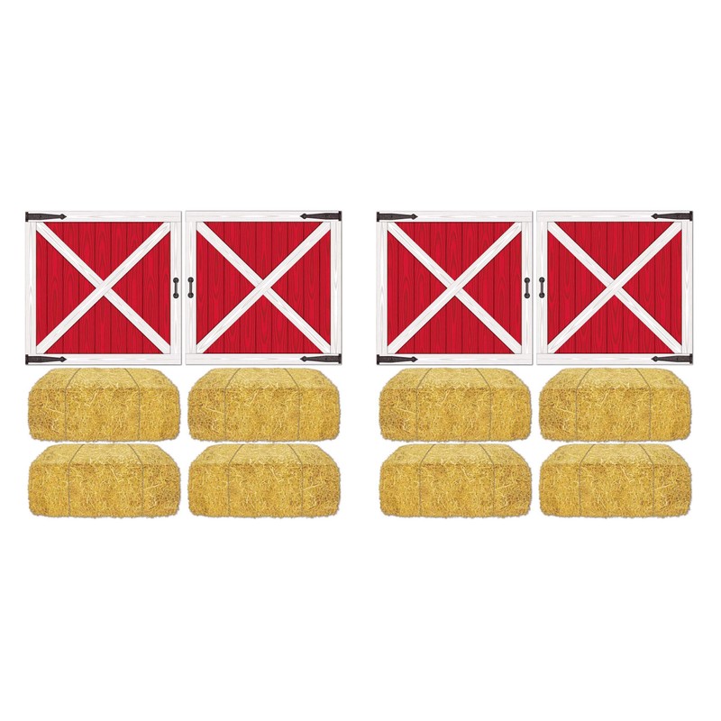 Beistle Barn Loft Door & Hay Bale Props 12 Piece, 15.5" - 32.5", Multicolored