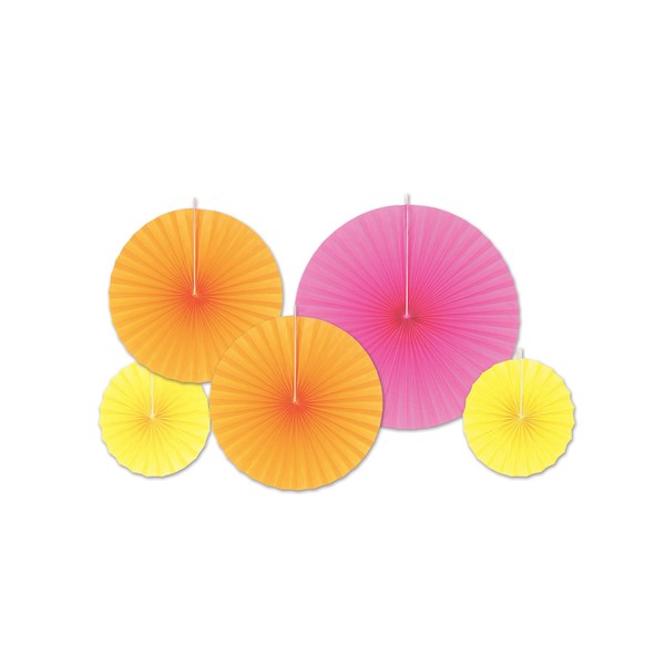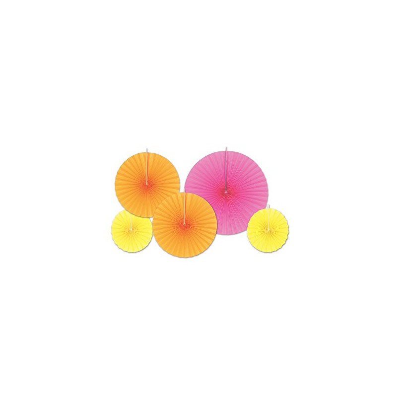 Beistle Colorful Tissue Paper Fans, Pink/Orange/Yellow - 5pcs