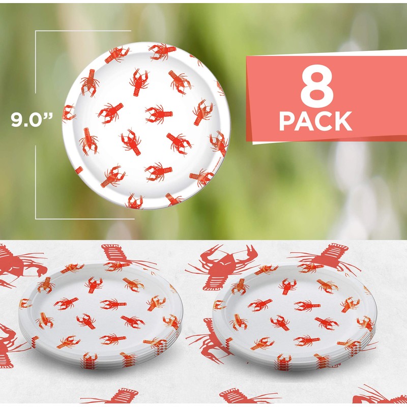 - GRAPHIC-PRINTED DINNERWARE - Each item on this bundle is printed with multiple crawfish on a white background. Great for events like Mardi Gras, themed events, birthday celebrations, reunions, picnics, and more!