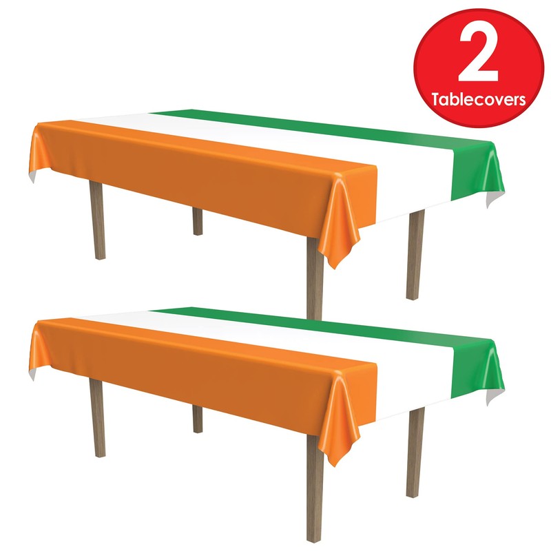 Beistle Irish Tablecovers, 54” x 108”, 2 Pieces – Plastic Table Cloth, Rectangular Tablecloth, Striped Tablecloth, St. Patrick’s Day Tablecloth, St. Patrick’s Day Decorations, Irish Tablecloth