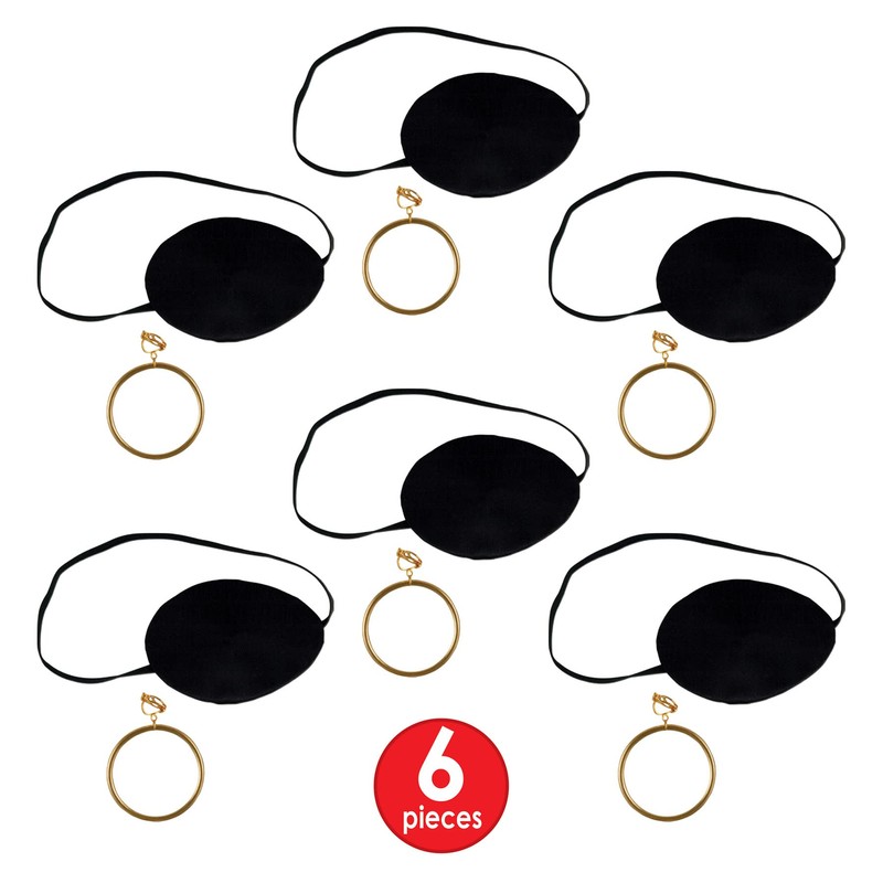 Beistle Pirate Eye Patch with Plastic Gold Earring Pack of 6