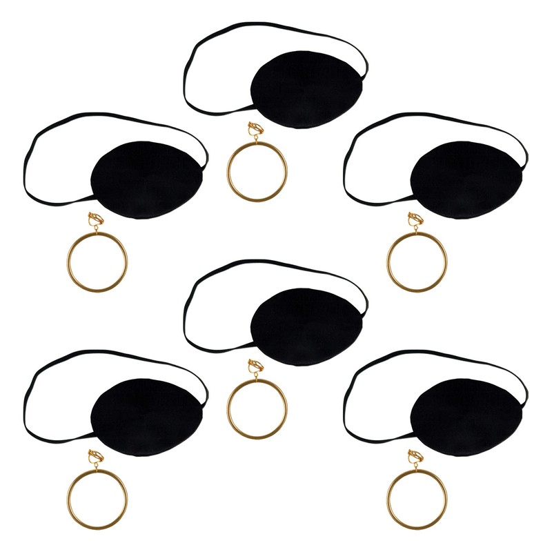 - Eye patches made of fabric with elastics attached; hoop earrings made of plastic
