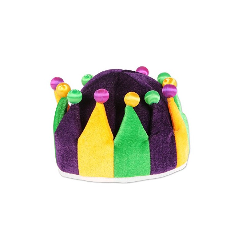 Beistle Plush Jester Crown, Green/Yellow/Purple