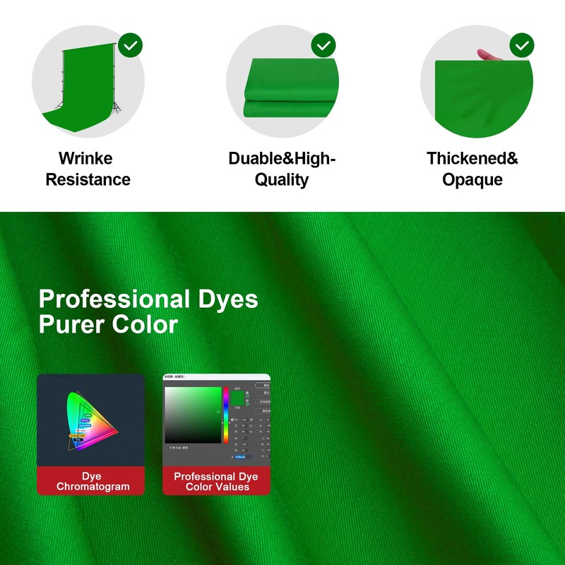 - PURE COLOR: Our chromakey green photo backdrop made of high quality 100% polyester fabric, completely seamless fabric, provides a good result for shooting. Tips: This green mesh fabric has some creases after a long time folded into the bag. You can iron with a steam iron, hang it for a while, or wipe it with a wet towel twist to remove wrinkles.