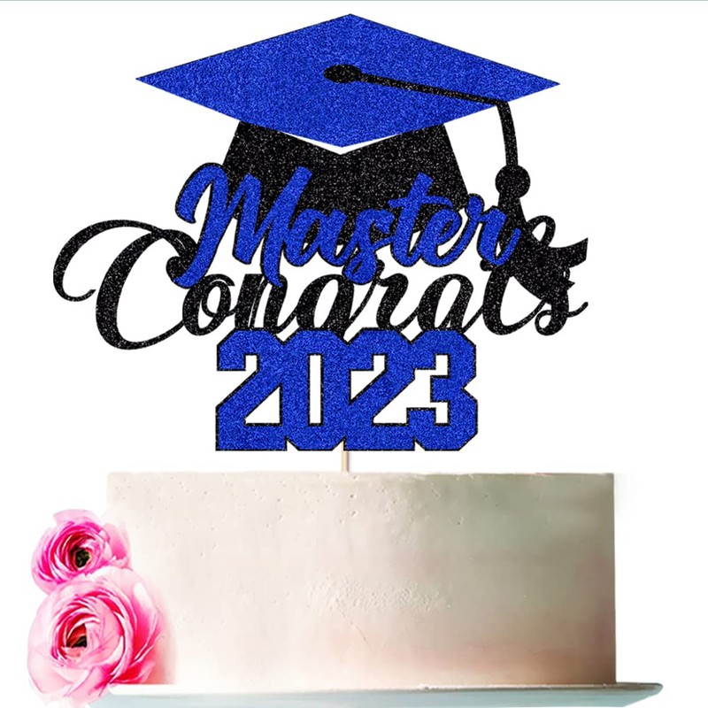 Bejotaa Felicidades Master - Decoración para tartas Mastered It - Suministros de decoración para fiesta de graduación de maestro 2023 (negro y azul)