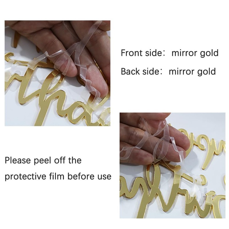 - Material: la decoración para pastel de cumpleaños está hecha de acrílico dorado de doble cara, que es ligero y duradero, no se rompe ni se decolora fácilmente. y puede decorar directamente tu pastel sin montaje.