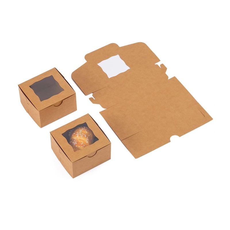 Bekoetoz Bekoetoz 100Pcs Paper Cookie Boxes With Window Small Bakery Boxes 4x4x2.5 Inches Mini Cake Boxes For Pastries,Cupcakes,Desserts,Donuts,Chocolate Strawberries,Candy,Treat Boxes(4 * 4 * 2.5,Brown)