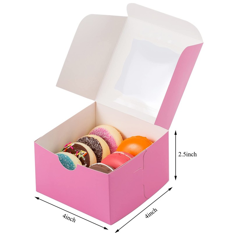 Bekoetoz Bekoetoz 100Pcs Paper Cookie Boxes With Window Small Bakery Boxes 4x4x2.5 Inches Mini Cake Boxes For Pastries,Cupcakes,Desserts,Donuts,Chocolate Strawberries,Candy,Treat Boxes(4 * 4 * 2.5,Pink)