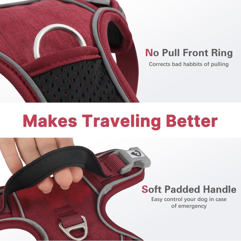 Belababy Large Dog Harness, Anti Pull Dog Harness with Soft Padded Handle for Walking Training, Adjustable Reflective for Small Medium Large Dogs, Red L