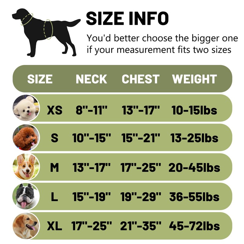 - ★【Applicable Sizes】Our dog harness comes in 6 sizes, suitable for the vast majority of dogs on the market. Size XL applies to: Weight: 73-108 lbs. Neck: 22.5"-25.5", Chest Girth: 26"-38". According to user feedback, if your dog happens to be the upper limit of this size, it is recommended that you buy a larger size chest harness, which can greatly increase the comfort of the dog.