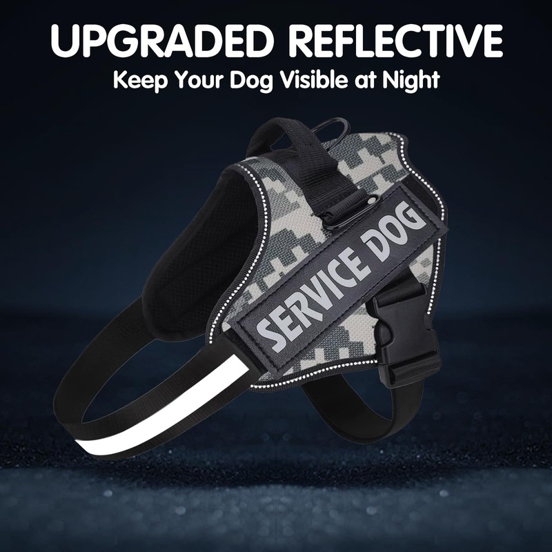 Belababy Soft No Pull Dog Harness X Large, Adjustable Assistance Service Dog Vest with Safety Buckle, Reflective Breathable Outdoor Training Dog Harness(Gray Camouflage)