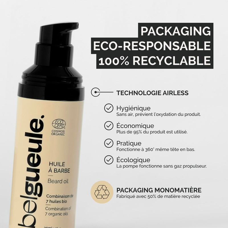 BELGUEULE Trockenes Bartöl, bestehend aus 7 stärkenden und pflegenden Ölen, 100% natürliche Inhaltsstoffe, biologisch, vegan
