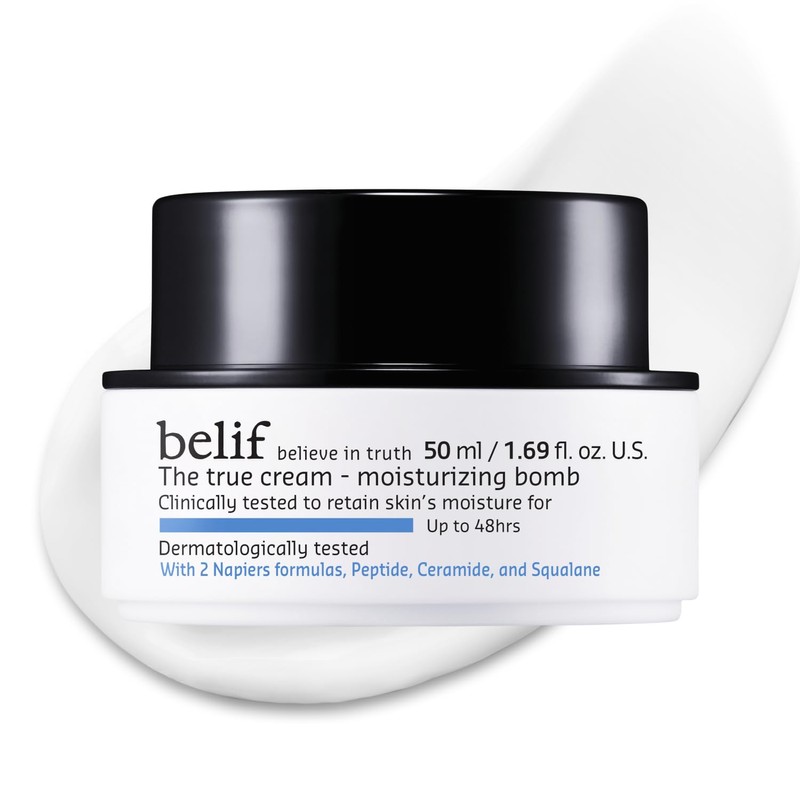 belif belif The True Cream Moisturizing Bomb - 48hr Intense Hydration with Peptide, Ceramide & Squalane, Milky & Lightweight Daily Moisturizer, Restores Skin Barrier, Korean Skincare, 1.68 fl. oz. (50ml)